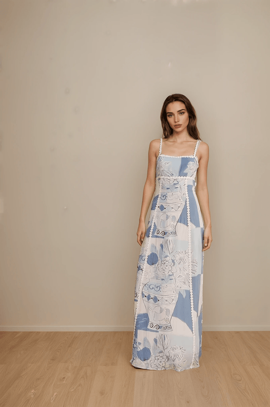 Fluid Art-Inspired Sleeveless Maxi Dress